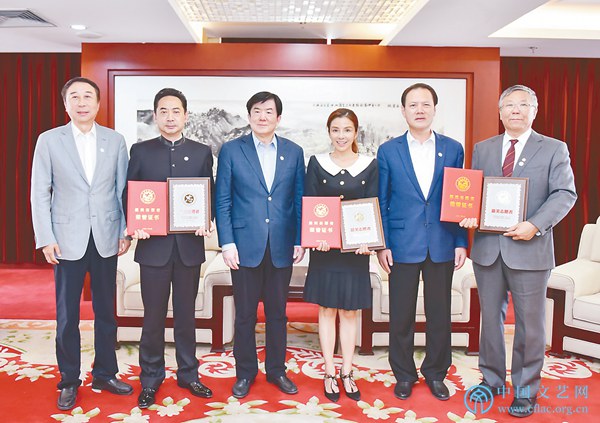 中国文联党组书记、副主席李屹,中国文联党组成员、副主席李前光,中国文联副主席、中国文艺志愿者协会主席冯巩为“最美志愿者”朱迅、王铁牛、刘劲颁发证书、奖牌。