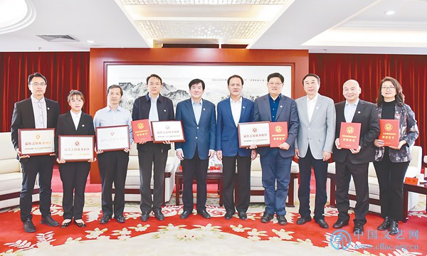 中国文联党组书记、副主席李屹,中国文联党组成员、副主席李前光,中国文联副主席、中国文艺志愿者协会主席冯巩为“最佳志愿服务组织”“最佳志愿服务项目”“最美志愿服务社区”代表颁发证书、奖牌。张喜红摄