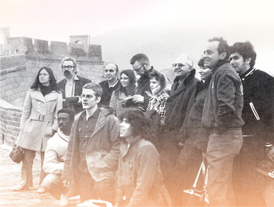 1971年4月,美国乒乓球队成员在长城游览时合影。