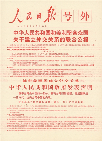 1978年12月16日,中美发表正式建交的联合公报。1979年1月1日,中美正式建立外交关系。