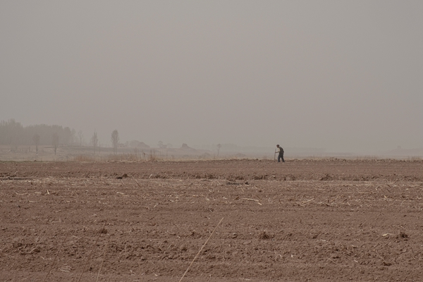 居住在长城边的人——一位农民在春耕,大同新荣区宏赐堡。大同市 梁伟宏 摄