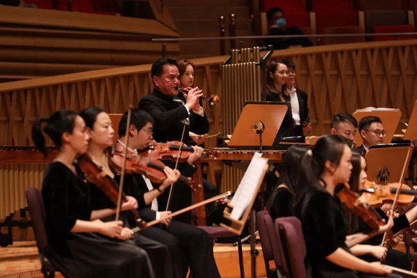 最后,音乐演出在欢快昂扬的管弦乐《手拉手——中华大家园》中落下帷幕。五部红色作品或昂扬、或深情、或激荡、或恢弘,汇成一场具有鲜明个人特色的专场音乐会,表达了上海这座红色城市的光荣与骄傲,抒发了中华儿女永远跟党走、奋进新征程的豪情壮志。