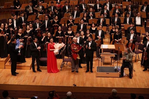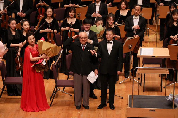 “作为老党员,老战士,首先向我们亲爱的党胜利召开二十大表示最崇高的敬意和最热烈的祝贺!作为电影作曲家,希望今天以音乐会的形式献上我的一份爱意,一份薄礼。”在热烈的掌声中,92岁高龄的吕其明激动地走上舞台。“这五部作品都是我的心声,也是我践行着党的文艺方针,履行着我的入党誓言,传承着我的红色基因的结果。我在党的怀抱里成长,红旗照耀我前进的道路,没有党对我的培养就没有我今天的一切,我的内心充满着对党的无限感激之情。”吕其明的感言发自肺腑、掷地有声、感人至深。他表示今后将一如既往,不忘初心,牢记使命,全心全意为人民服务,作出自己应有的努力和贡献。