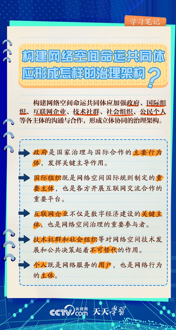 什么是网络空间命运共同体?为何要构建网络空间命运共同体?《天天学习·学习笔记》为您梳理习近平治国理政关键词之网络空间命运共同体,与您一起学习。