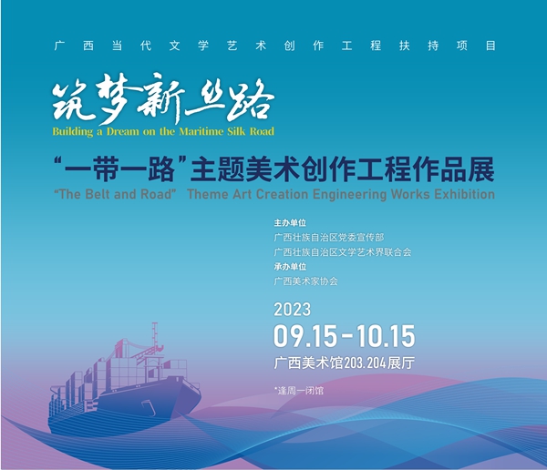 日新月异新时代,“一带一路”谱新篇。2023年是习近平总书记提出共建“一带一路”倡议10周年。在广西壮族自治区上下深入学习贯彻习近平总书记对广西工作的系列重要讲话和重要指示批示精神、奋力开拓新时代壮美广西建设新局面之际,9月15日至10月15日,由广西壮族自治区党委宣传部、广西文联共同主办,广西美协承办的“筑梦新丝路——‘一带一路’主题美术创作工程作品展”在广西美术馆举办。