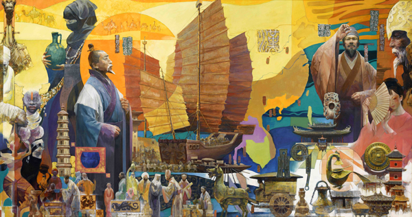 李琪 邓彬 海丝古港著华章 160cm×310cm 中国画