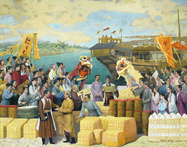 雷璨铭、雷务武 海上丝绸之路的“广西通道”之南流江 200cm×250cm 油画