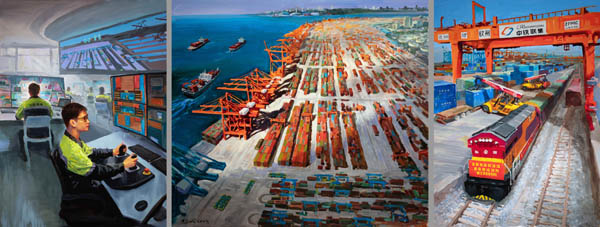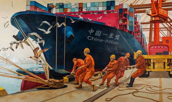 黄超成 国际枢纽海港、国际门户港——北部湾港(钦州港) 300cm×116cm 油画