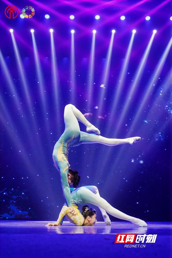 甘雨加、王建国表演杂技《男女软功——梦蝶》。