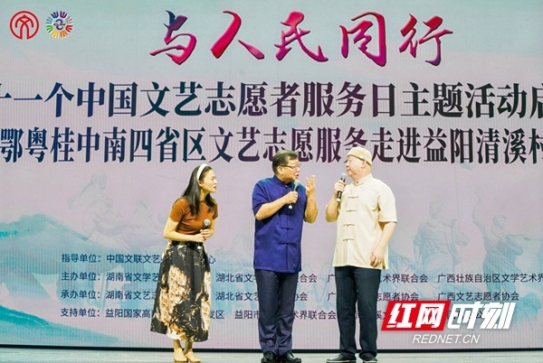 5月23日,“与人民同行”——第十一个中国文艺志愿者服务日主题活动暨湘鄂粤桂中南四省区文艺志愿服务采风交流系列活动在湖南益阳启动。湖南、湖北、广东、广西中南四省区文联的艺术家和文艺志愿者近百人齐聚一堂,为当地群众奉献了一道文艺大餐。