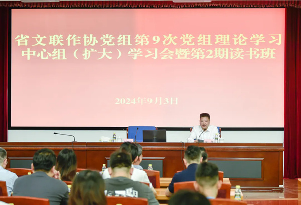 9月3日上午,海南省文联作协党组举办第9次党组理论学习中心组(扩大)学习会暨第2期读书班,深入学习贯彻党的二十届三中全会精神,集中传达学习海南省委八届五次全会精神。海南省文联作协党组书记、海南省文联主席夏斐主持读书班。
