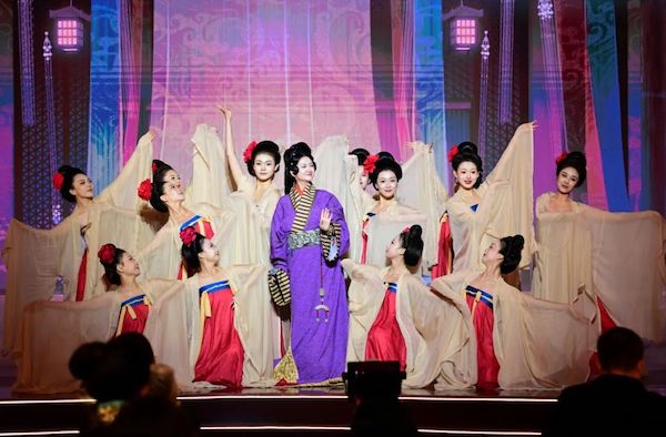沉浸式国风舞台以“锦绣华裳·烟台韵,链接世界·织古今”为设计理念,融合民乐、舞蹈、国风秀、AI影像等多种艺术形式,共同彰显跨越千年、风华绝代的汉服之美。