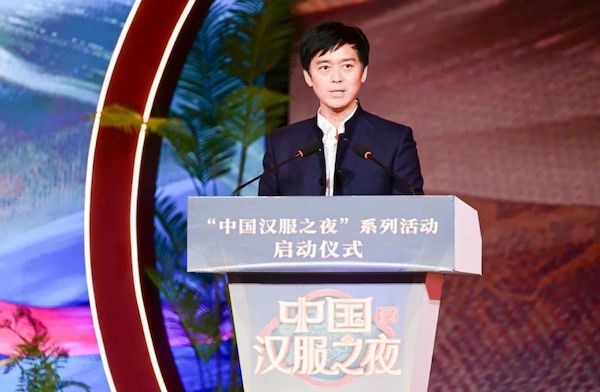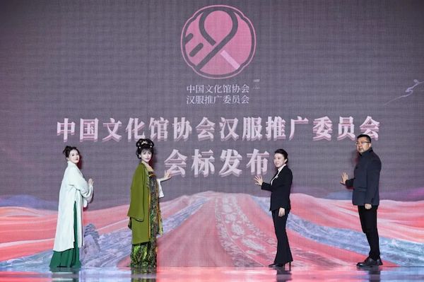 刘瑜、张硕、李子柒、璇玑等四位嘉宾共同按下启动键,发布了“中国文化馆协会汉服推广委员会”会标。由汉字的“汉”演变而来的会标,右侧变形而成交领右衽,寓意着将日月乾坤、三辰五行穿进衣服,行于天地,书写一个“汉”字。
