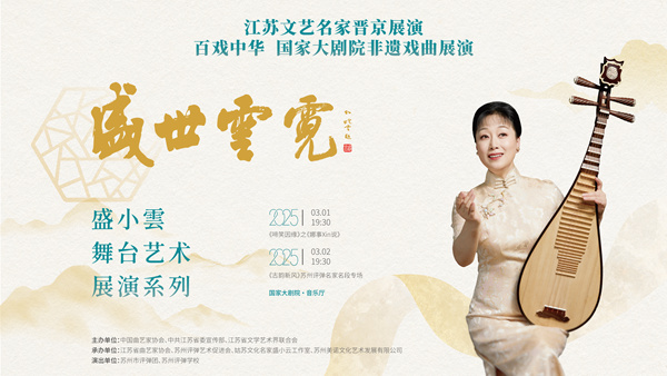 长篇弹词《啼笑因缘》之《娜事Xin说》即将于3月1日亮相国家大剧院,这是江苏文艺名家晋京、百戏中华国家大剧院非遗戏曲——《盛世云霓》盛小云舞台艺术展演系列活动的第一场演出。该活动由中国曲艺家协会、中共江苏省委宣传部、江苏省文学艺术界联合会主办,紫金文化奖章获得者盛小云领衔。“江苏紫金文化奖”是以江苏省委、江苏省政府名义表彰的全省宣传思想文化领域最高荣誉奖项,自2013年首届表彰以来,先后共有43位文艺名家获此殊荣。为进一步扩大文艺名家影响,近年来,江苏为紫金文化奖获得者举办晋京展览展演等系列活动,宣传推介江苏各艺术领域名家名作,推动文艺事业繁荣发展。
