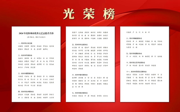 谢勇云在会上致辞。邱桂丽宣读市文联关于通报表扬2024年度钦州市优秀文艺志愿者的通知,灵山县、浦北县、钦南区、钦北区文联和市公安文联负责同志分别在会上发言。现场还举行了颁发荣誉证书仪式。
