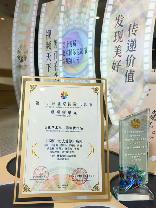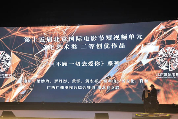 广西浦北县文联参与主创的网剧《不顾一切去爱你》,自播出以来引起较大反响并屡获殊荣。4月25日,第十五届北京国际电影节短视频单元荣誉盛典在中国传媒大学举办,《不顾一切去爱你》一路“过关斩将”最终登上领奖台,荣获本届电影节短视频单元文化艺术类二等奖。