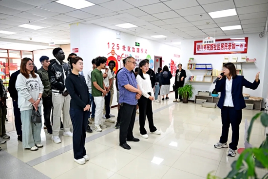 活动伊始,20位来自北方民族大学的外国留学生,在社区工作人员的讲解下,听取了颐和城府社区获得全国民族团结进步社区的生动故事。