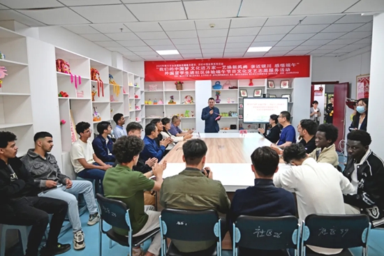 为加强国际传播能力建设,讲好银川故事、宁夏故事、中国故事,在一年一度的端午佳节来临之际,5月30日上午,由银川市文联、银川市委外事办、北方民族大学、金凤区颐和城府社区主办,银川市作家协会、银川市戏剧家协会、银川市文艺志愿者协会、金凤区文联承办的“我们的中国梦 文化进万家——艺焕新风尚 亲近银川 感悟端午”外国留学生进社区体验端午节日文化文艺志愿服务活动在宁夏回族自治区银川市金凤区颐和城府社区温馨开展。