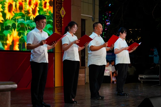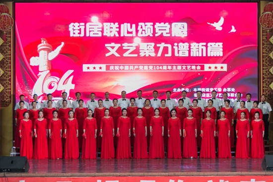 为热烈庆祝中国共产党成立104周年,传承红色基因,凝聚奋进力量,6月30日晚,由大连市普兰店区丰荣街道党工委、办事处和普兰店区文联主办,普兰店区民间文艺家协会和丰荣街道古城社区党委协办的“街居联心颂党恩 文艺聚力谱新篇”主题文艺晚会在古城社区党建广场精彩上演。晚会汇聚街道、社区干部、文艺家、党建联建单位机关干部以及居民等多方力量,以丰富多彩的文艺形式,为党的生日献上诚挚祝福,为市民带来一场文艺盛宴。