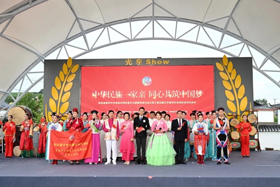 在习近平总书记视察延边十周年之际,7月16日,由吉林省民族事务委员会、吉林省文学艺术界联合会、吉林省文化和旅游厅、吉林省文艺志愿者服务中心主办,延边州文学艺术界联合会、延边州民族事务委员会承办,中共和龙市委宣传部、和龙市文学艺术界联合会、和龙市民族宗教事务局协办的“中华民族一家亲 同心共筑中国梦”吉林省铸牢中华民族共同体意识主题惠民演出金达莱大美边疆文艺宣传队走进和龙市光东村。这场演出不仅是对习近平总书记视察延边十周年的深情回望,更以文艺之力凝聚起各族群众同心筑梦的磅礴力量,为当地百姓带来了一场浸润心灵的文化盛宴。