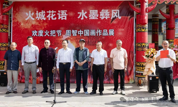 本次艺术展的举办,既是深入践行2025年火把节“守正创新、特色化呈现、亮点化打造”办节要求的生动实践,也是将高雅艺术展示深度融入楚雄地域文化生态,构建多元文化体验场景,延伸文旅消费链条的创新探索。展览以楚雄火把节“火的狂欢、花的绚烂、彝的风情”为核心意象,精心遴选周智先生艺术生涯60余幅精品力作,通过中国画特有的水墨语言解构与重构民族文化符号,深度诠释彝族“万物有灵”的哲学内涵,为观众打造“赏画作之韵、悟文化之魂、品节庆之趣”的沉浸式观展体验,更以艺术赋能“中国火城・浪漫花都”楚雄城市文旅品牌建设。