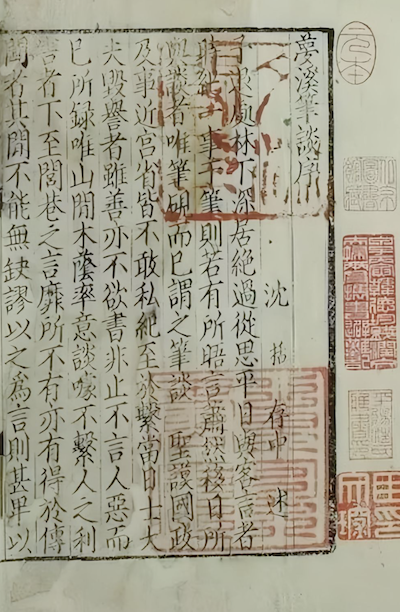 沈括(1031-1095),字存中,号梦溪丈人,钱塘(今杭州)人。沈括一生著作很多,见于载籍著录及前人和沈括本人杂记的就有40种,但流传下来且基本保存原貌的只有《梦溪笔谈》一书。《梦溪笔谈》收录了沈括一生的所见所闻和见解,共26卷,再加上《补笔谈》3卷和《续笔谈》1卷,分故事、辩证、乐律、象数、人事、官政、艺文、书画、技艺等17个门类共609条。其内容涉及天文学、数学、地理、物理、生物、医学和药学、军事、文学、史学、考古及音乐等学科,可以说是包罗万象,无所不有。《梦溪笔谈》不仅是中国文化科技史上一份珍贵的遗产,在国际学术界也享有盛誉,被英国科学史巨擘李约瑟赞誉为“中国科学史上的重要里程碑”。早在19世纪中期,日本就已对其进行排印出版;进入20世纪后,法国、德国、英国、美国、意大利等国的众多学者与汉学家纷纷投身于《梦溪笔谈》的系统深入研究之中。当下重读《梦溪笔谈》,既能溯源东方科学传统,又能为现代跨学科研究提供历史镜鉴,彰显中华文明对世界文明发展的独特贡献。