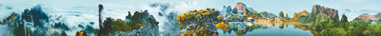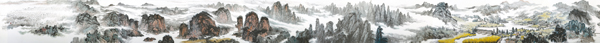 由江西省文联总策划、江西省美协承办、景德镇市文联协办的巨幅通景式釉上瓷板画《锦绣中华》,是江西省文联“八一起艺”文艺创作重点项目之一。作品长56米、高1.6米,寓意中国56个民族团结奋进,为实现伟大的中国梦而书写新时代宏伟的锦绣篇章。长卷以中华大地的名山大川为题材,从世界屋脊喜马拉雅山开卷,至广袤无垠的中国南海、钓鱼岛收官,纵横神州大地,画遍东西南北,波澜壮阔、气势雄浑。