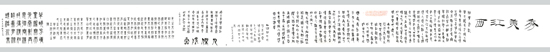书法长卷的创作古已有之,难在创新,也贵在创新。为突破以往书法长卷创作中书家各行其是的弊病,《秀美江西》统一谋篇布局,其构思设计经历了4次重大修改。最终长卷以中国文字演变为序,由甲骨文《滕王阁序》开卷,后接金文、竹简、帛书,书体则依次是大篆、小篆、隶书、楷书、草书、行书,最后以江西省文联党组书记、常务副主席汪天行的《锦绣赣鄱赋》结尾。书写风格多样,却又寓变化于规矩中,创作出了一幅气势连贯、完整统一的长卷书法精品。其构思考究、设计严谨、形式多样、内容丰富,是一件不可多得的艺术佳作。