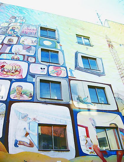 在美国旧金山这样一个繁忙的城市中街头壁画众多,闹市、车站、居民区、公园、高速公路边,都能见到壁画,有的竟然有几层楼高,上百米长,和建筑物结为一体,巧妙地利用门窗、阳台、凹角凸棱等,让人以为真有一片美好空间延展开去。画的内容则无所不包,有美女武士、走兽飞禽、陆沉海啸、山川风光,还有名人肖像、民俗传说、政治理想、公益宣传。这些画作无疑美化装饰了城市,舒缓了无处不弥漫的生存压力。很多作品流露的情感迥异于白人主流社会的文化传统和理念,其中有很多挣扎,有大声抗议,有痛苦坚持。这些作品是20世纪60年代后期兴起的现代城市壁画运动的产物,有“人民艺术”之称。在美国,纽约、洛杉矶、旧金山、圣菲是街头壁画最集中的城市,都数以千计,先后出现了一些世界闻名的作品。但是它们都很难长久存在,绝大多数在风吹雨淋中消失了,这也是街头壁画的一个特点。