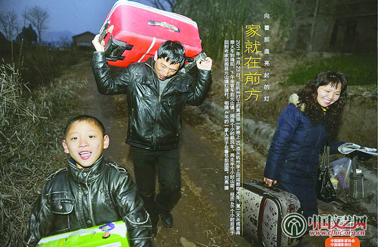 2011年1月23日,在杭州打工的贾成银一家晚上10点从杭州坐上回成都的火车,第二天从成都再乘火车到绵阳,下午坐客车到元山镇,搭两个小时顺风车,再走半个小时山路,经历46个小时后终于回到老家剑阁县元山镇红旗村。相隔4年的一家人终于在春节前团圆。刘 亮 摄