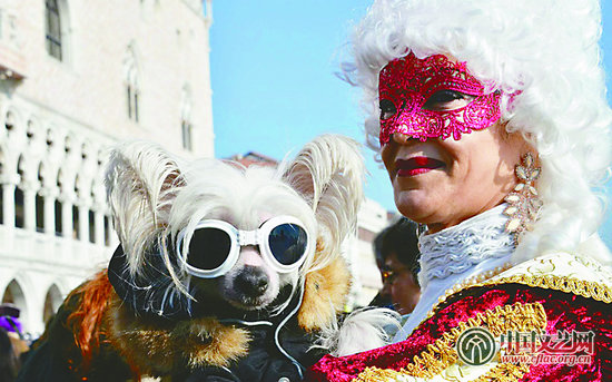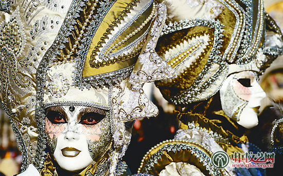 在面具装扮游行中,人们顶着羽毛装饰的头饰、披着飘逸垂坠的斗篷,最重要的是,还有那些镶满珠宝的面具,所有人都享受着这场席卷整个城市的盛大化妆舞会。 (沈 川)