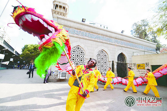 几名埃及学生在开罗举行的“欢乐春节”大庙会上表演舞龙。据报道,为了舞龙舞狮,开罗中国文化中心还举办过培训班——为了过好春节,埃及人民也是蛮拼哒!