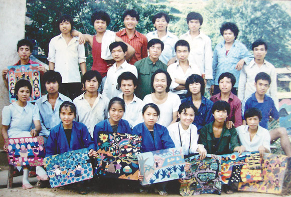 三江县文化馆在独峒乡举办农民画学习班,学员留影