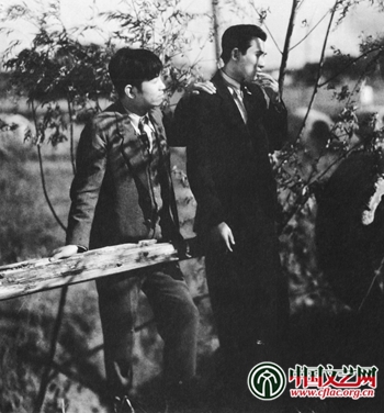 一九三七年,年轻的吕班(左)与赵丹主演了经典影片《十字街头》