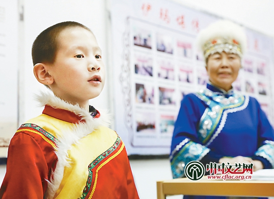 小学员尤明昊在同江伊玛堪传习所诵唱《母魂寻回》。计世伟/摄