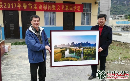 1月20日,广西文联组织文艺志愿者深入大新县五山乡三合村、天水社区开展了以送摄影作品、送春联和拍摄全家福为内容的春节走访慰问活动,为山区群众送去了温暖和新春祝福。