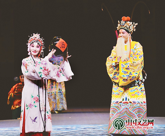 舞台上所有的表演皆为剧作服务,在徽剧《惊魂记》中,编剧孙强融入了彩婆等三位神仙的表演,他们作为事件的推动者和舞台氛围的调剂者,一步步将子胤推到弑君夺位的地步,并总是在紧张氛围之后,以嬉笑的方式出现在舞台上,作为旁观者,评论事件发生的情况,这三人的出现,在某种程度上降低了子胤夺位的罪恶感。其次,彩婆的矮子步表演赢得了观众的掌声。该剧的舞台美术非常简单,偌大的舞台为演员的表演提供了很大的表演空间。