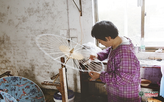 制作纸伞的第一个步骤就是削竹做伞骨、伞柄等,再钻孔、拼架、穿线、串联伞柄和伞头,这样伞架就成型了。竹子需要事先浸泡一段时间,这样可以减少其中所含的糖分,确保竹制伞架经久耐用。因为竹子易遭虫蛀、易发生霉变,制作好的伞架需要经过严格的高温蒸煮,并在太阳下暴晒。在晒好的伞架上,要先绕三四圈边线,再用胶裱上五颜六色的棉纸或丝绸,做好伞面。伞面还需涂上桐油,因为桐油可在伞表面形成一种保护膜,具有防水、防腐等效果。