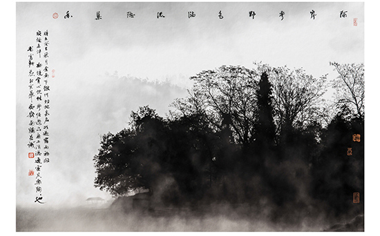 “我在绘画上有自己的一些想法,我曾在央美国画系学习,中国画和中国的传统元素在我的身上有所体现,生活中我也很喜欢中国的传统文化,所以在拍摄创作中,我就会尽力表现一种中国画的图式,其中就包括了诗词书画篆刻,即‘诗书画印摄’。过去,不是有‘诗书画印’四绝吗?现在我把摄影加进来,有时候会自己调侃说“五味杂陈”,用这五个元素来表现我的风格。二次创作也是为了更进一步完善我的拍摄主体和风格。”夏天公说。
