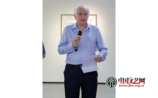 批评家阮诗寇博士(Dr.Rasko Radovic)在“画非画”夏天公摄影作品展开幕式上发言 中国文艺网 周春桃 摄