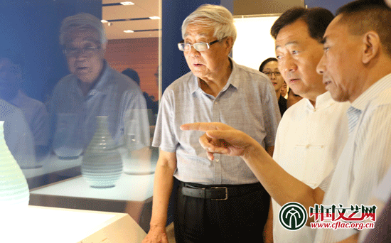 中国国家博物馆馆长吕章申、清华大学美术学院教授张守智参观瓷器作品 中国文艺网 段冉摄