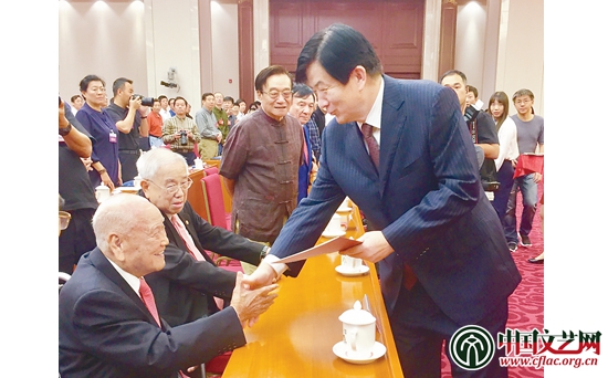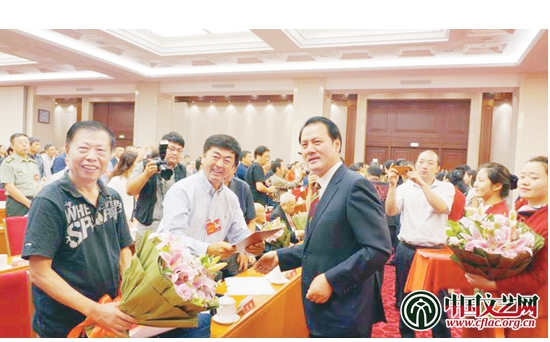 9月3日,中国摄协第九次全国代表大会闭幕式上,李屹为中国摄协第九届顾问简庆福颁发聘书 王 悦 摄