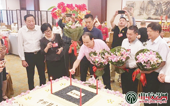 9月3日,中国摄影家协会秘书长高琴代表协会为在会议期间过生日的代表送去祝福 吴苏琳 摄