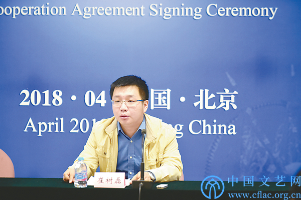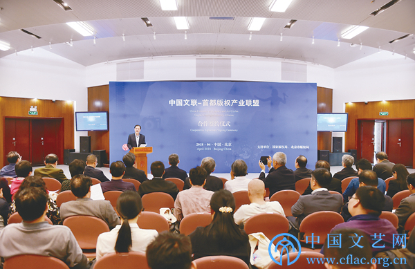 中国文联-首都版权产业联盟合作签约仪式现场,中国文联党组成员、副主席李前光致辞