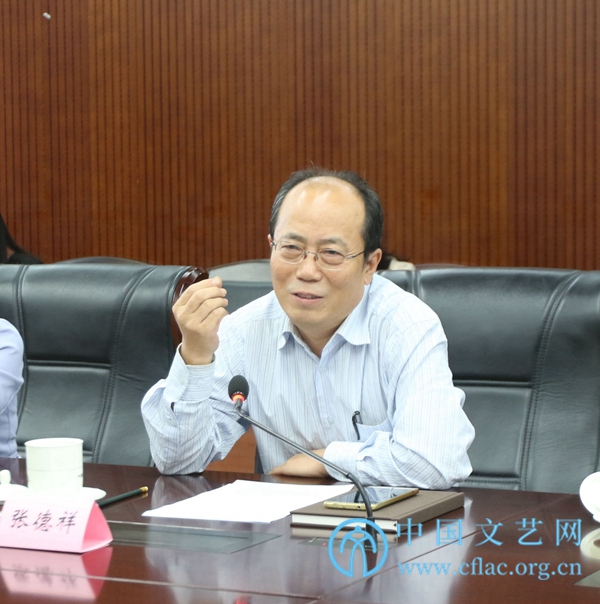 9月25日,由中国文艺评论家协会、中国文联文艺评论中心主办的“文艺评论家学习贯彻全国宣传思想工作会议精神座谈研讨会”在京召开。图为中国文艺评论家协会主席团成员张德祥在会上发言。中国文艺网 胡艳琳摄