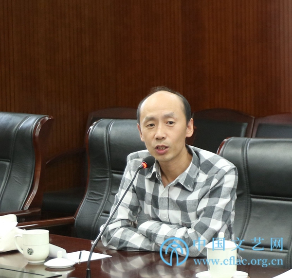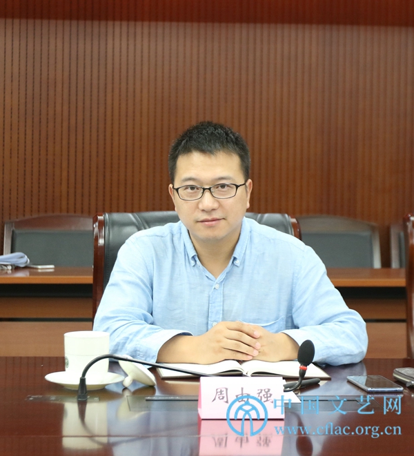 9月25日,由中国文艺评论家协会、中国文联文艺评论中心主办的“文艺评论家学习贯彻全国宣传思想工作会议精神座谈研讨会”在京召开。图为中国文艺评论家协会副秘书长、中国文联文艺评论中心副主任周由强在会上发言。中国文艺网 胡艳琳摄