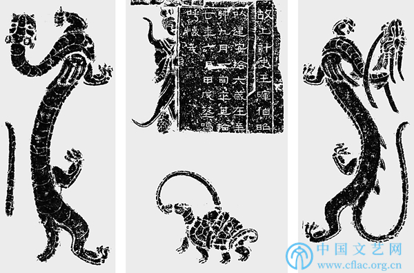 王晖石棺上的羽人、墓志、玄武、青龙、白虎拓片