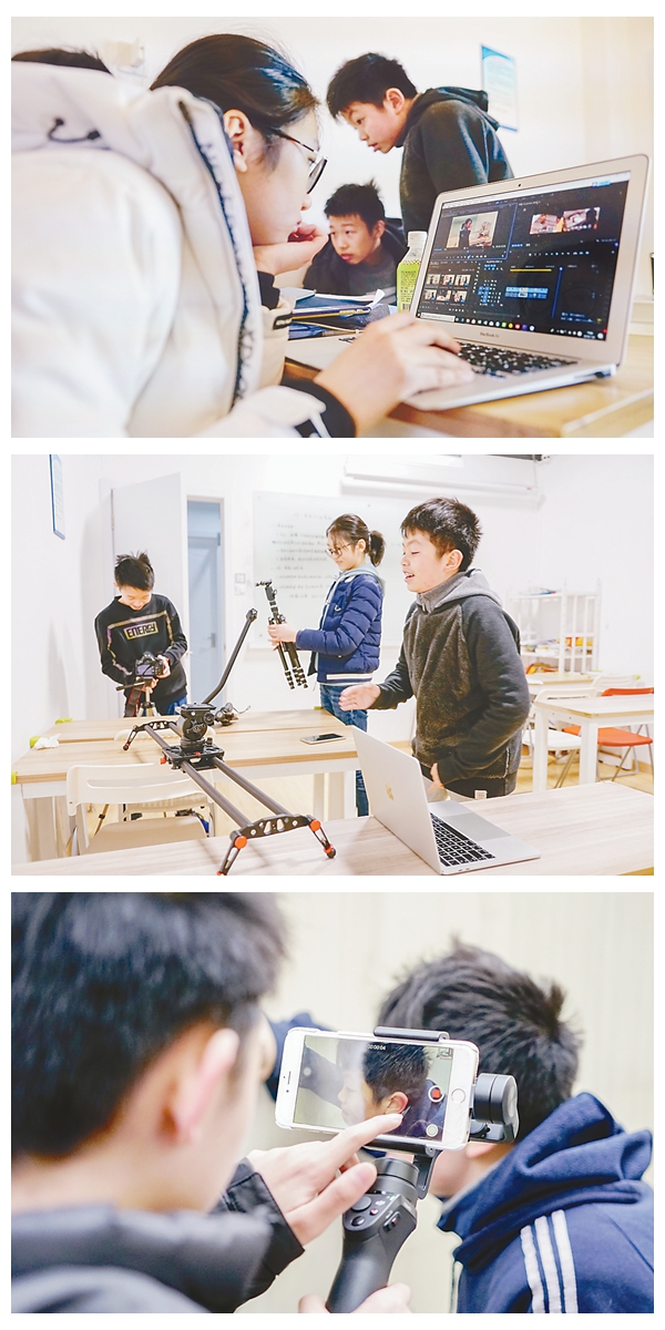 (压题图为浙江师范大学文化创意与传播学院副院长余韬在上海外国语学院附中的学生中开展影视创作教学实践,小学六年级及初中一年级的学生拍摄他们自己创作的短剧本作品。)