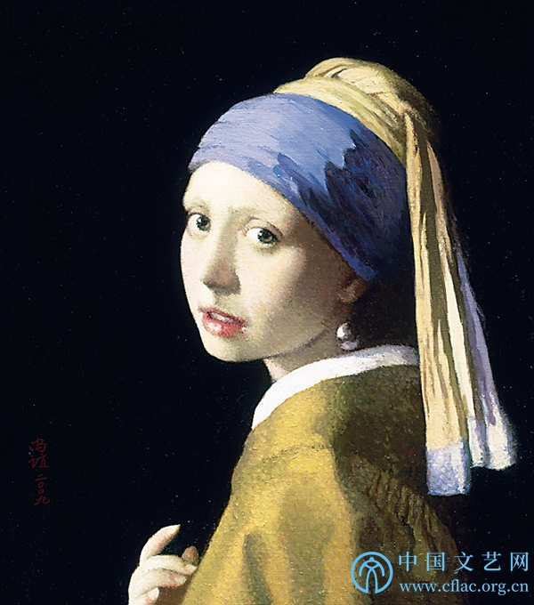 惶恐的戴珍珠耳环的少女(布面油画)2009年 靳尚谊