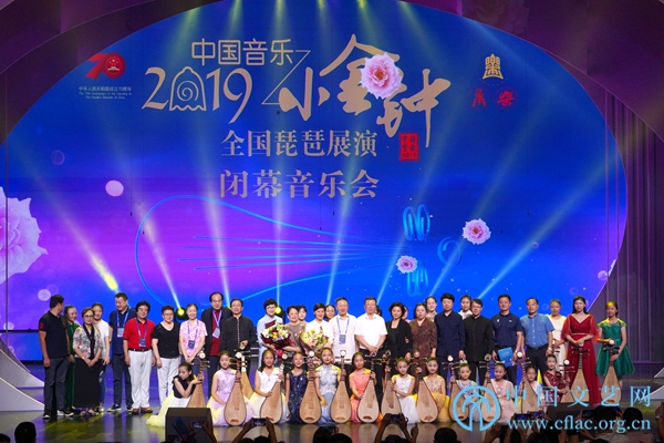 8月18日晚,由中国音乐家协会、宁波市委宣传部共同主办的中国音乐小金钟——2019全国琵琶展演在浙江宁波镇海圆满落幕。赵塔里木、王宏、郁伟年、魏祖民等中国音协和宁波市委宣传部、市文联有关方面负责人出席闭幕式,并为本届中国音乐小金钟琵琶展演专业组、业余组(儿童组)、业余组(少年A组)、业余组(少年B组)四个组别获得“琵琶新星”“琵琶新秀”“琵琶新人”称号表彰的小选手们颁奖。